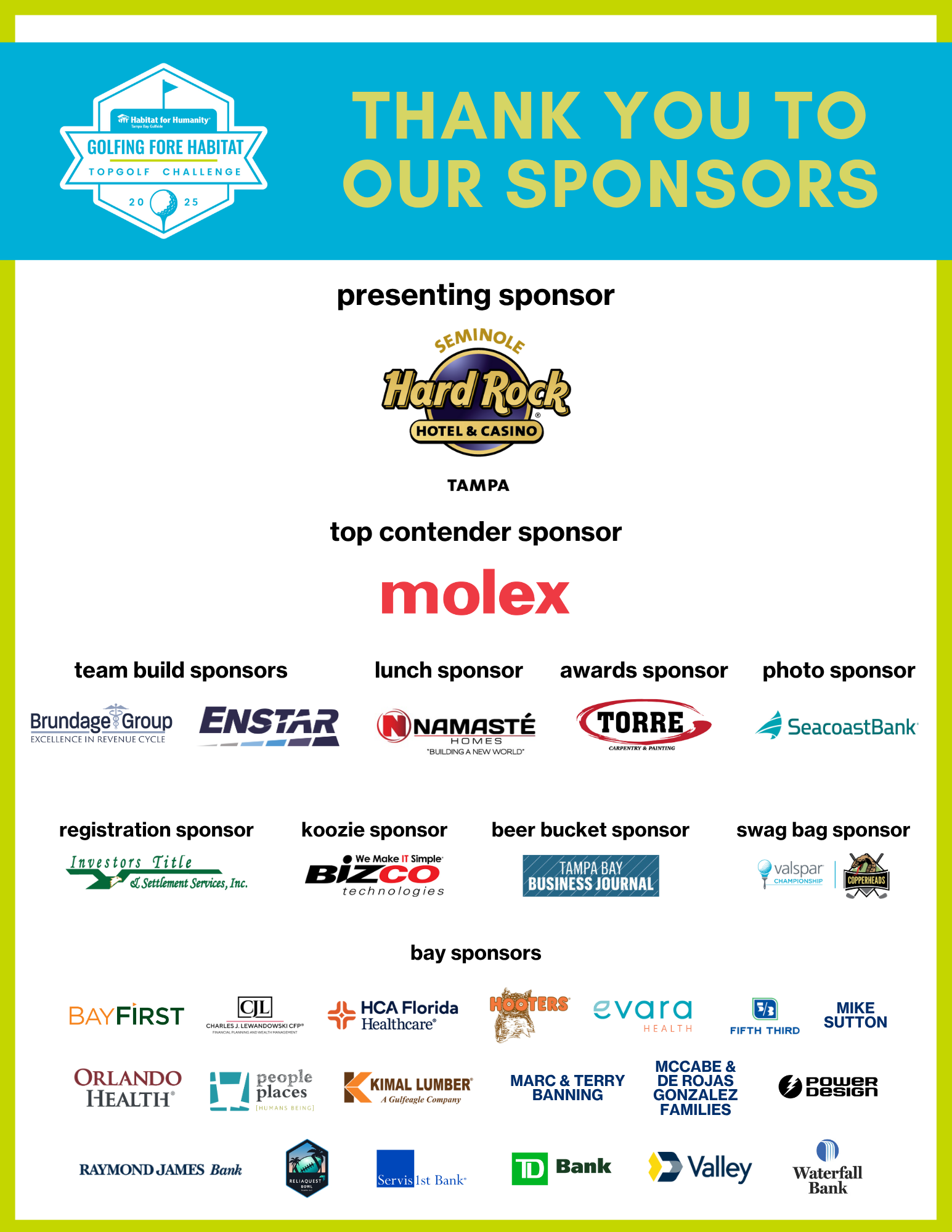 Since 2011, Habitat for Humanity has hosted a golf tournament to raise funds to build more homes for families in our community. We are excited to announce that the Golfing Fore Habitat Topgolf Challenge presented by Seminole Hard Rock Tampa will be returning on Monday, November 3rd at Topgolf St. Pete.