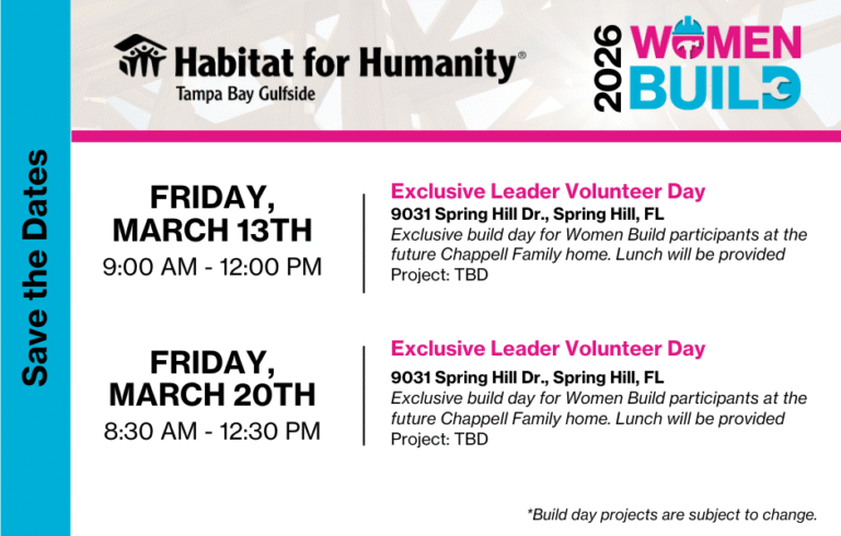 We invite female leaders in the community seeking a transformational opportunity to support the homeownership dreams of a deserving family to join the 2026 Women Build in Hernando County!